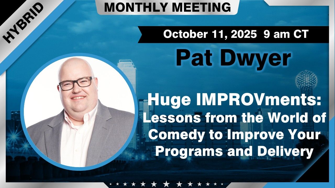 What if being a more engaging, confident, and connected speaker or trainer didn’t require being naturally funny? What if you can learn tips, tools, and tricks to think like a comedian and add comedic elements to your speaking? In Make IMPROVments, veteran speaker and comedy pro Pat Dwyer draws from over 20 years of experience in improv and sketch comedy to show how the principles of improv can help you take your keynotes and programs from predictable to powerful, from uninspiring to engaging. Whether you want to break the ice, handle hecklers with grace, or breathe new life into your delivery, this session brings practical, entertaining strategies to help you make every audience interaction feel personal, meaningful, and even fun.